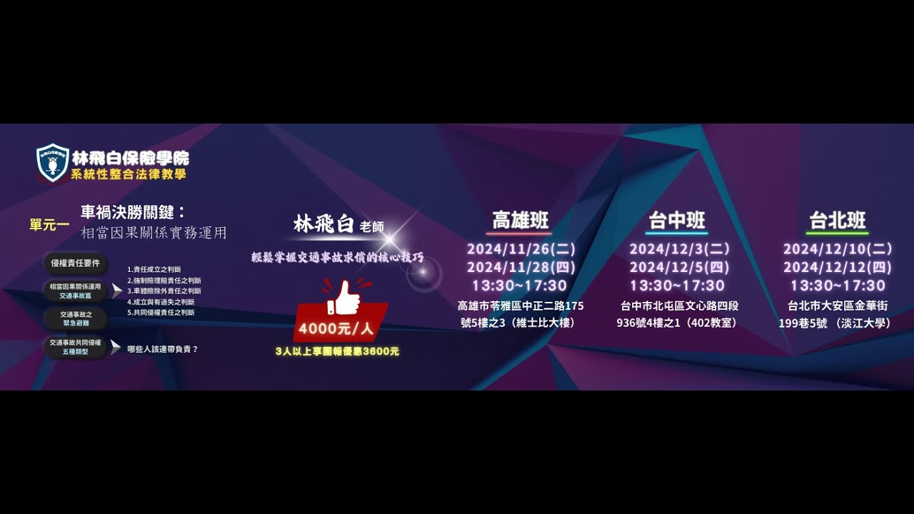 首頁 / 文章總覽 / 兵部 / 2024 車禍決勝關鍵: 相當因果關係實務運用 – 林飛白老師